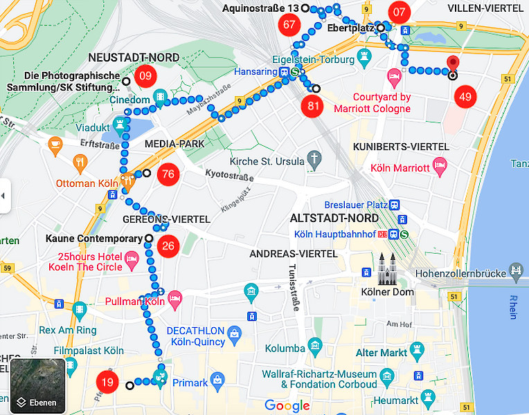 Nr. 81 - Danach geht es weiter zur Ausstellung „kommen sie nach hause“ (Gereonswall 27a, Privatwohnung Steff Adams) ist eine nicht-kommerzielle Wanderausstellung in Wohnungen und zeigt Arbeiten, die normalerweise als beiläufige Nebenprodukte in den Schubladen der Künstler:innen verborgen bleiben.