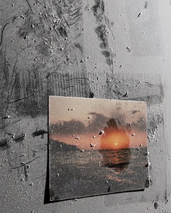 "Ich suche Bilder, die sich nicht in dem Dargestellten erschöpfen, sondern darüber hinaus verweisen." Was Kati Faber (*1969 in Gera) in diesem Fall gefunden hat, ist ein doppelter Boden innerhalb des fotografischen Mediums. Sie verweist in ihrer Arbeit "Eine Meditation über den Progress" auf den Akt des Freilegens von Verborgenem unter den Staub. Dabei ist nicht die Geste zu sehen, sondern ein Teil des Ergebnisses, welches als Handlung mit den Mitteln der Fotografie auch auf selbige verweist. Nicht der Sonnenuntergang ist Inhalt von Kati Fabers Arbeit, sondern die Fotografie davon, bedeckt von Staub, bereit auf etwas zu verweisen. Es muss nur freigelegt werden.